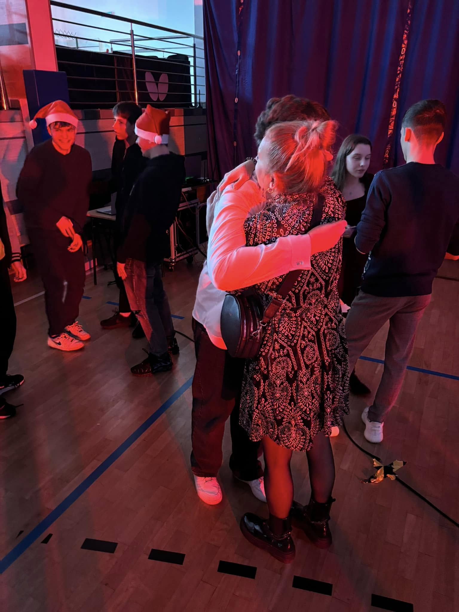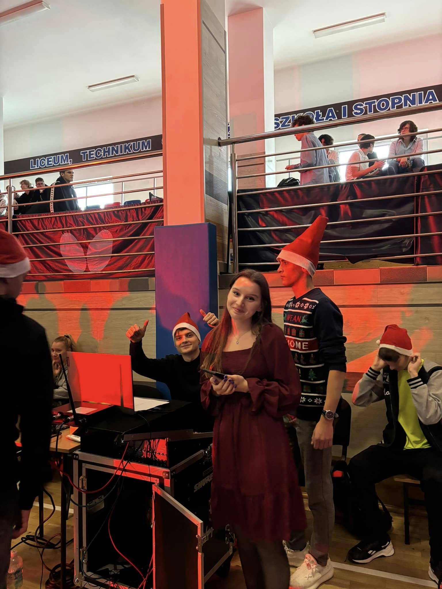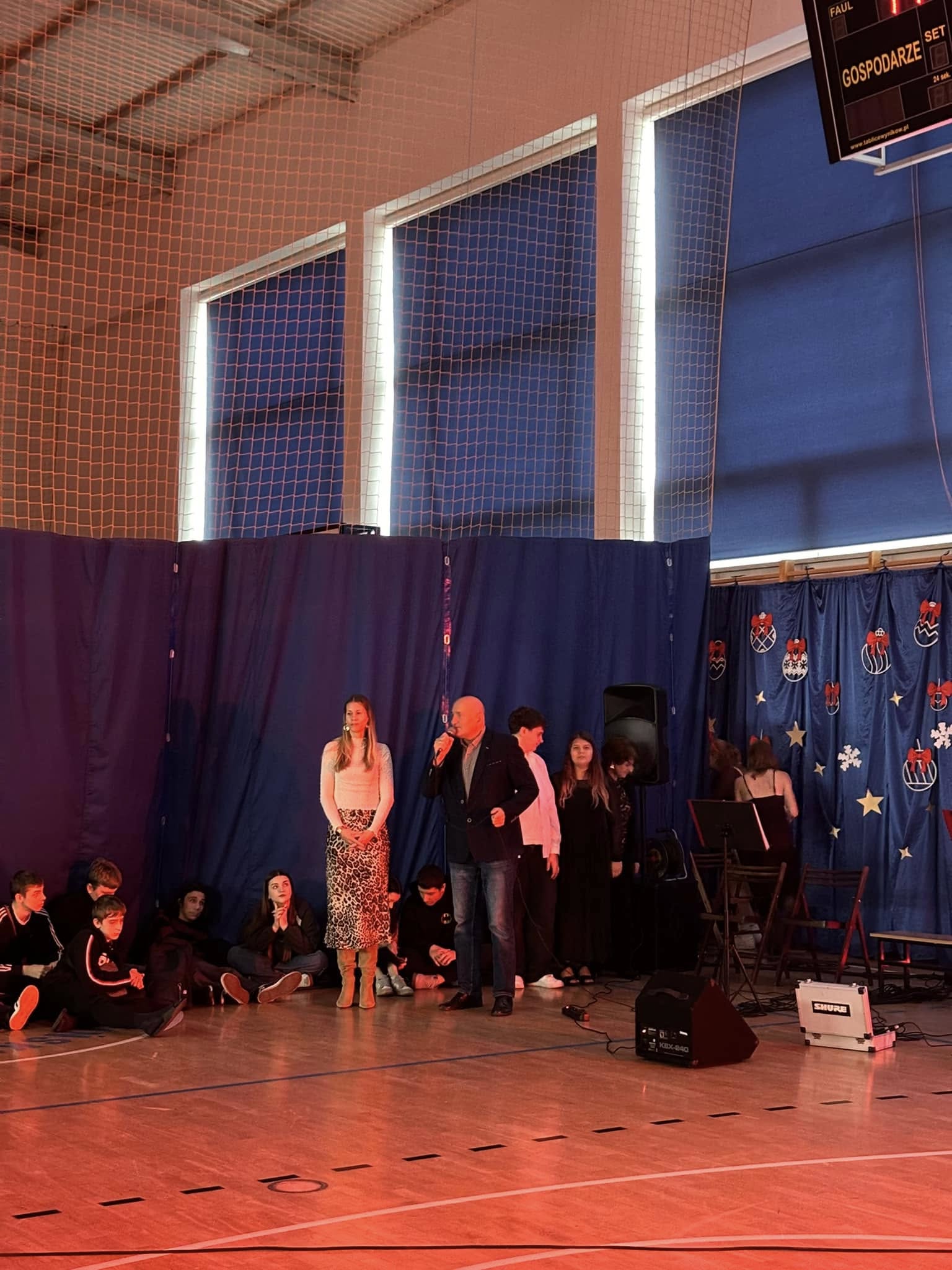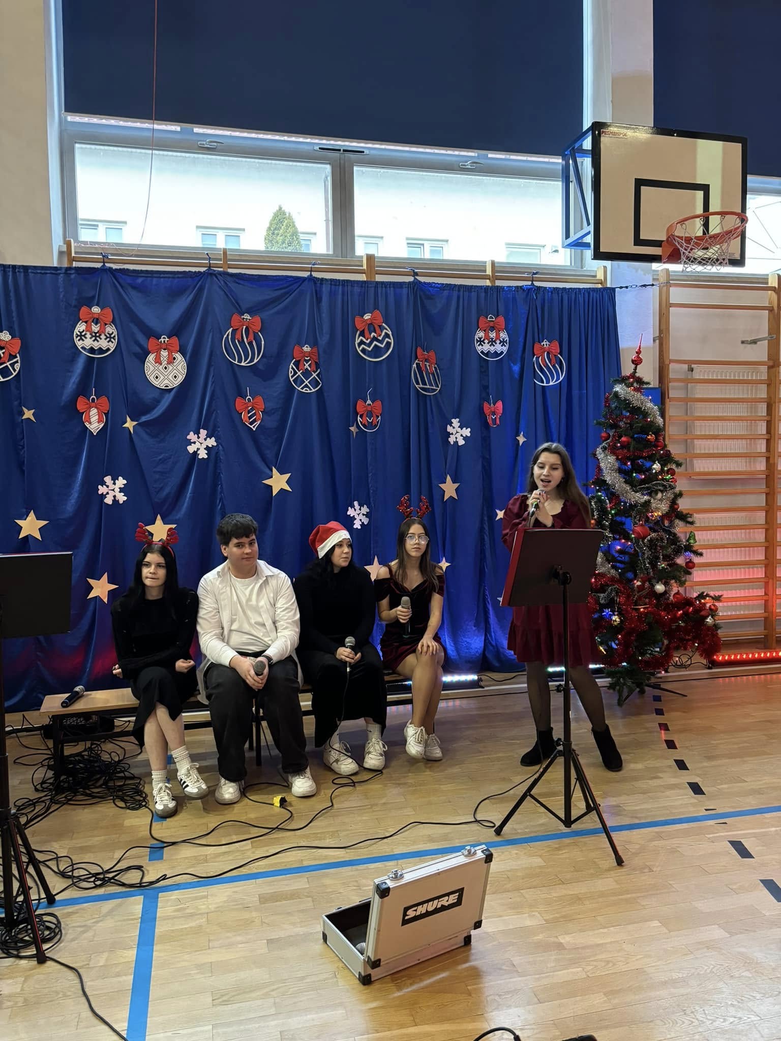 Uczniowie i pracownicy szkoły, przed rozpoczęciem, przerwy świątecznej, wraz z sekcją muzyczną zaśpiewali kolędy i pastorałki,