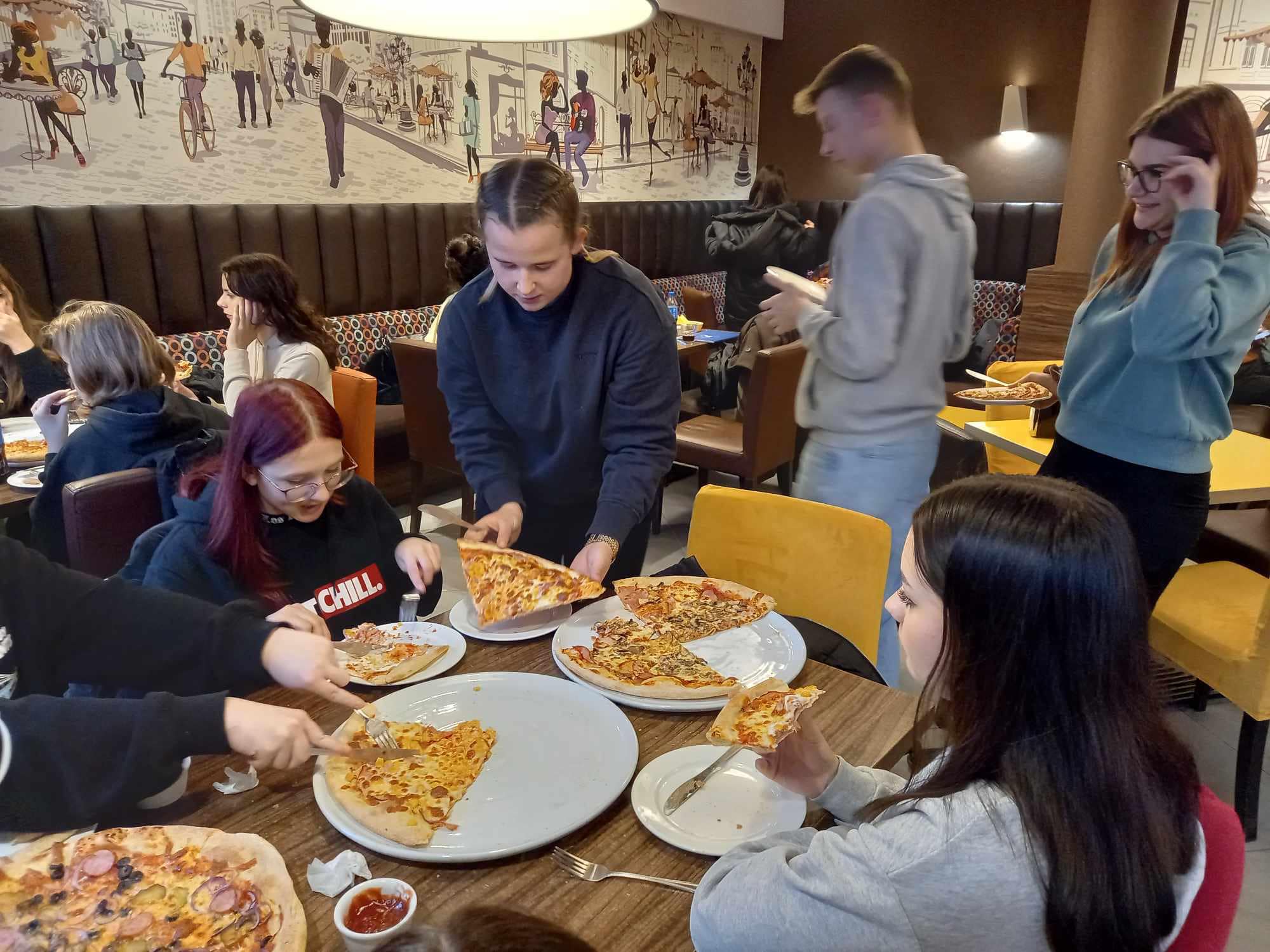 Po zakończonych warsztatach uczniowie udali się na poczęstunek do pizzerii Roma. 🍕Wycieczka została zorganizowana przez Europejskie Centrum Kształcenia i Wychowania OHP w Roskoszy.