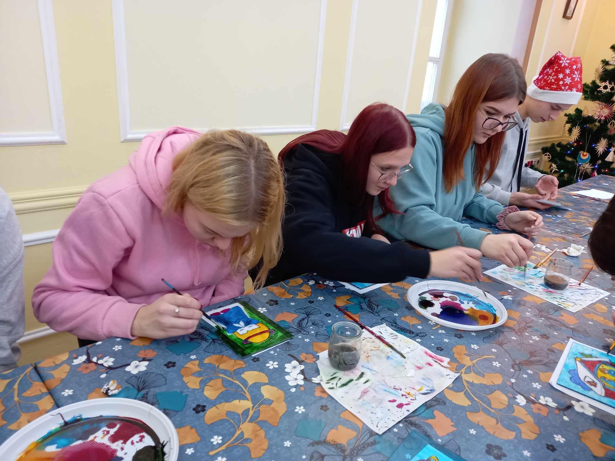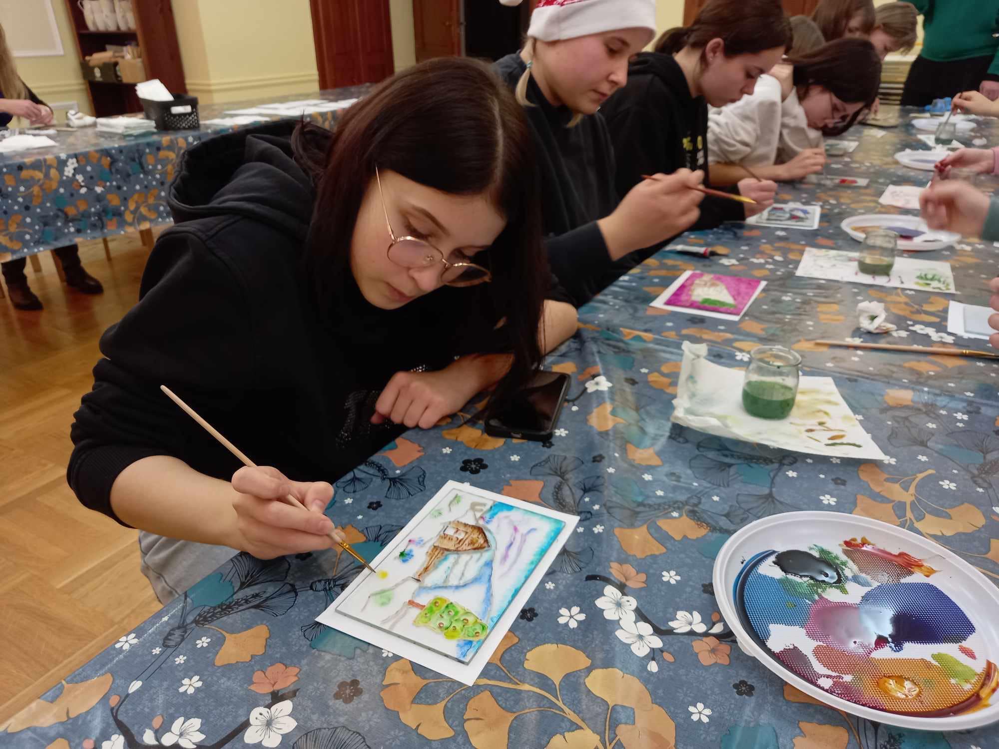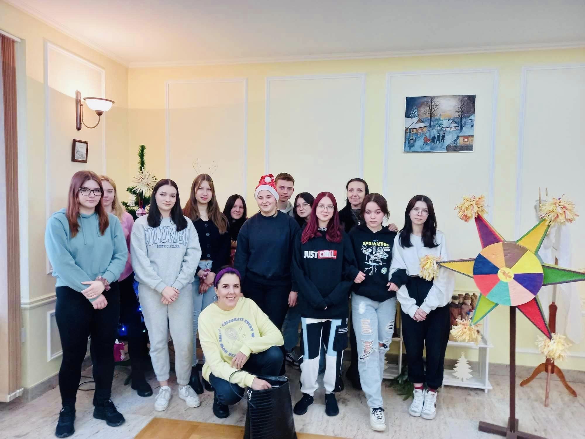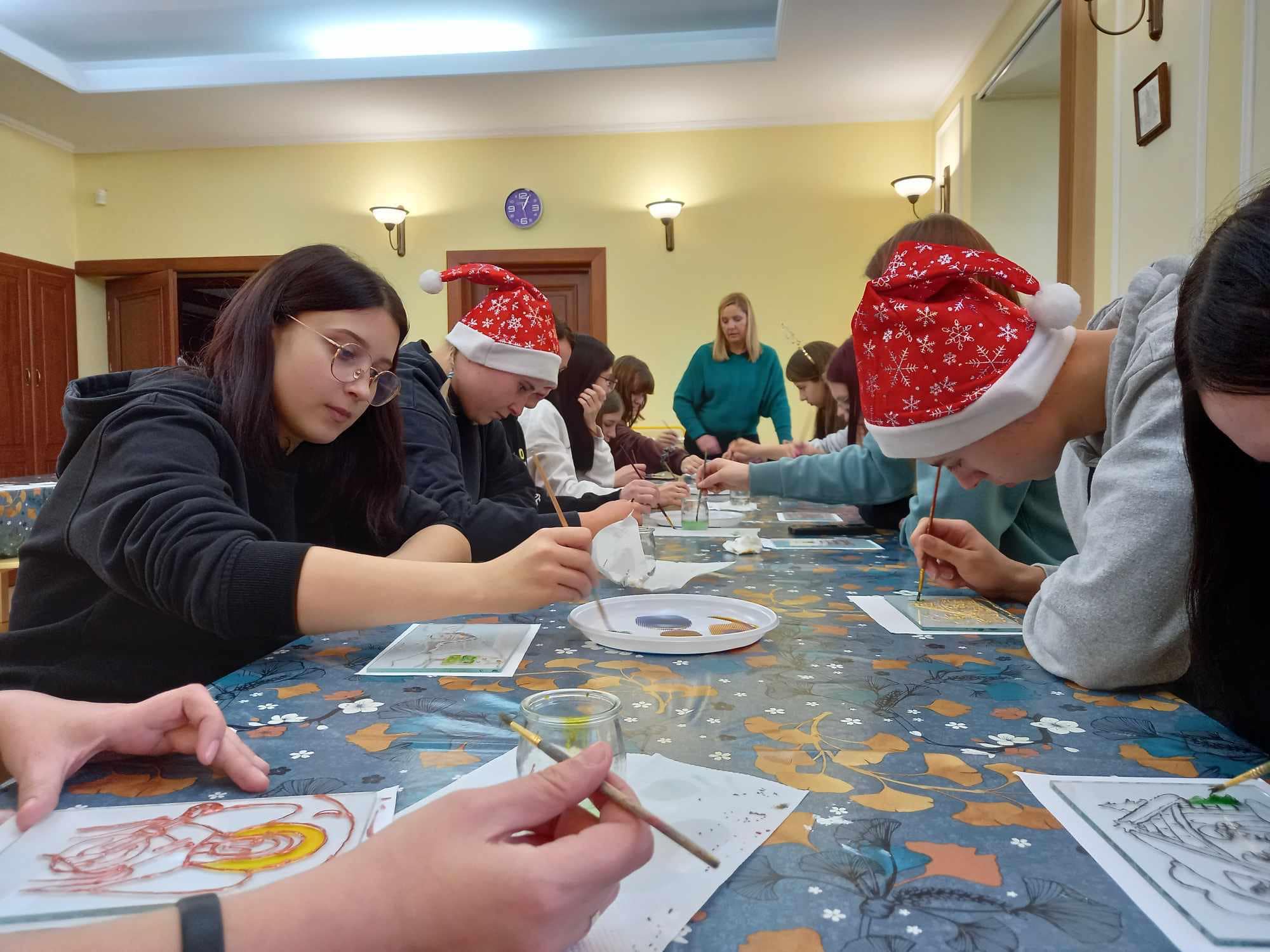 Młodzież wysłuchała wykładu na temat tradycji świątecznych oraz poznała technikę malowania witraży. 🎨🖼️